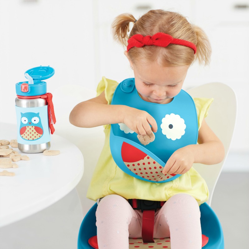 Superfin smekke i silikon med lomme fra Skip Hop. Smekken er enkel å rengjøre, den kan tom puttes i oppvaskmaskinen! Den rulles enkelt inn i seg selv, perfekt på tur!
