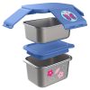 Nå kan du pakke lunchen til mini, eller litt snacks, i dette superpraktiske settet i rustfritt stål. Settet er laget for å kunne stables oppå hverandre og kunne lukkes på den måten. Settet består av en stor og en liten boks med lokk for å tas med på tur. Match med de fine barnehagesekkene i samme motiv.