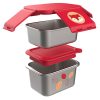 Nå kan du pakke lunchen til mini, eller litt snacks, i dette superpraktiske settet i rustfritt stål. Settet er laget for å kunne stables oppå hverandre og kunne lukkes på den måten. Settet består av en stor og en liten boks med lokk for å tas med på tur. Match med de fine barnehagesekkene i samme motiv.