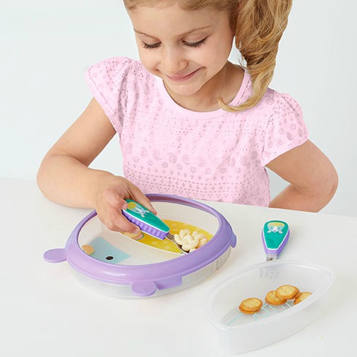Skip Hop Zoo tallerken med sølekant gjør det enkelt og morsomt for barna å lære seg og spise selv. Settet kommer i tre deler med en gjennomsiktig skål og en unik, avtagbar sølekant som passer på at maten ikke havner på bordet. Både tallerken og skålen har en silikonlist i bunnen som gjør at de står stødig på bordet. Tåler oppvaskmaskin og mikrobølgeovn.