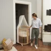 Stokke® Sleepi™ Mini er den perfekte første sengen for barnet ditt. Den skaper et trygt og komfortablet miljø. Det myke og ovalet designet gir barnet en følelse av trygghet og lar barnet sove komfortabelt og drømme søtt. Sengehimmelen og himmelstangen er et elegant tilbehør og passer perfekt til barnerommet. Sengen har låsbare svinghjul, som kan brukes til å «vugge» barnet forsiktig i søvn og gjør det enkelt å ta den fra rom til rom. Med en bredde på 67 cm er den utrolig plassbesparende, noe som gjør den ideell for små barnerom.