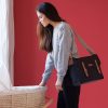 Den populære unisex messenger bagen nå også i sort – fortsatt like funksjonell og flott men med en delikat feel-good for mødre som ønsker at vesken skal være både praktisk og stilig! Produsert i holdbar canvas som lett kan tørkes av med en klut. Detaljer i børstet «gull». Kommer med en justerbar skulderstropp, stor ytre lomme med magnetlås som åpnes/lukkes enkelt. Vannavvisende stoff.
