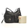 Skulderstroppen er justerbar og vesken kan bæres over skulderen eller henges over håndtaket på vognen. Selv om det er en skinnveske, veier den ikke mye. Kan tørkes med en fuktig klut.