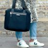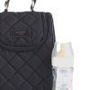 Lekker stelleveske i vannavstøtende quiltet nylon med detaljer i ekte skinn og metall. En perfekt proporsjonert veske med stor kapasitet og inndeling og rom slik en stelleveske bør være.