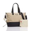 Tote er utstyrt med følgende: integrert flaskehoder, vattert stellematte og masse rom til å organisere alle sakene. Tekstilene er enkle å tørke av, designet er enkelt og stilig. Stor nok til å romme en laptop, romslig nok til å få plass til et klesskift.