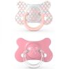Fusion-smokken fra Suavinex har et lite skjold og en innovativ form som gir minimal friksjon mot barnets hud og forhindrer irritasjon. Den anatomiske formen imiterer morens brystvorte når barnet suger på smokken.