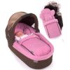 Posen er 75 cm lang og fåes i mange forskjellige fargekombinasjoner. Den passer perfekt i softbag eller babybag og gir en god støtte rundt babyens hode. Den har hull til fempunktssele slik at du kan feste den i bilstolen uten problem. Posen er todelt slik at du enten bare kan bruke fronten som en fotpose, eller den bunnen som sitteunderlag i vogn. Se bilder!