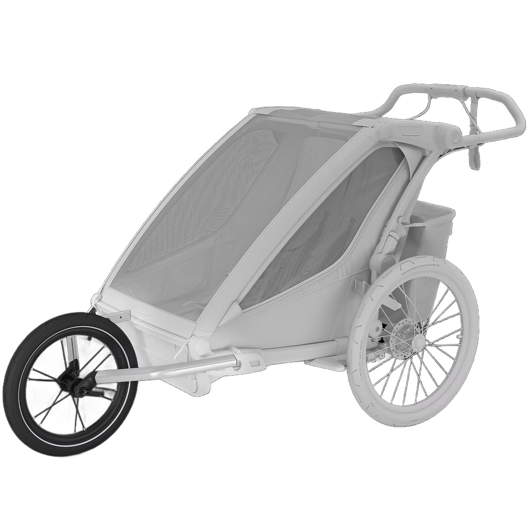 Gjør om Thule sykkelvognen til en robust joggevogn. Inkluderer aluminiumsarmer og et 16″ Quick Release Wheel. For 1-seters barnevogner.