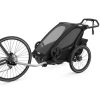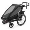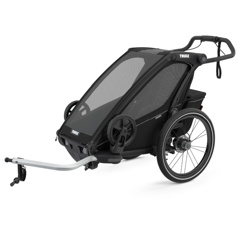 Den ultimate vognen til sykling, jogging og spaserturer med topp ytelse, komfort og stil for idrettsutøvere og barna deres. Inkluderer pakkene Standard, Comfort og Sport. Vognen har hvilestilling og ryggen legges enkelt ned med en hånd. De komfortable polstrede setene kan enkelt tas ut og vaskes og 5-punkt selene kan justeres i høyden. Vognen er kompakt sammenslått og er lett å ta med seg både i bil og på fly. Thule VersaWing-systemet gjør det raskt og enkelt å konvertere vognen til ulike aktiviteter, uansett hva slags sett du bruker. Justerbar bladfjæring gir en myk og behagelig kjøretur og håndbetjent skivebrems gir bedre kontroll i bratt terreng og ved løping. Regulering av temperatur og skygge i kabinen gjøres enkelt med de avtakbare sidevinduene og de nye ventil-lukene. Solskjerm som kan settes i flere posisjoner følger med. Ekstra stor bagasjeveske som kan festes opp, slik at du får bedre benplass ved jogging. Sykkelvognsett og trillehjul følger med. Ski og joggehjul selges separat.