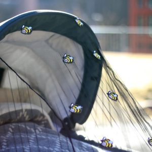 Insektnettet har figurer som er solid festet, både påstrøket og sydd fast i nettingen. Vesken som nettet kommer i er festet til nettet, og blir til en oppbevaringslomme på vognens utside når nettet er festet på vognen. Kan enkelt legges sammen i posen igjen og tar liten plass.