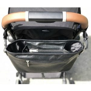Den perfekte blanding av koppholder og stelleveske hvor du har alt lett tilgjengelig, to flaskeholdere – en på hver side og et større rom med glidelås i midten.