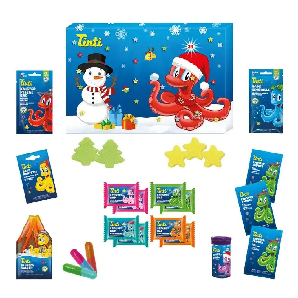 En adventskalender full av bademoro! 24 overraskelser som kan være med på å gjøre desember til en ekstra morsom (bade-)fest. Kalenderen inneholder 24 deler; alt fra knitrende bad, badevannfarger, klistremerker til badebomber og badekonfetti. Begrenset antall, så ikke vent for lenge med å sikre deg en. Tinti stimulerer fantasien og kreativiteten, og gjør badingen mer gøy.