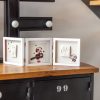 Dobbelt rammedesign: To separate rammer for hånd- og fotavtrykk, samt en sentral ramme for et bilde av din lille skatt.