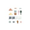 - inneholder: 1 aktivitetsbord, 2 spader, 2 bøtter, 4 former, 2 båter, 2 møller, 4 vegger