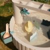 - materialer: Basseng, søyle, bro, vegger, klips, båt, kverner, kvernholder, deksel, ben: 50% polypropylen, 50% resirkulert polypropylen. Bøtter, Jamal sidebøtter: 50% resirkulert ABS, 50% ABS. Sandformer: 100% silikon