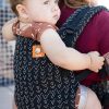 - Kroppspanelet justeres i tre breddeinnstillinger og to høydeinnstillinger for å muliggjøre en ergonomisk og sikker bæreposisjon når barnet vokser og utvikles