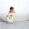 Praktisk, søt og smart, med denne bøtten fisker man enkelt opp badelekene som en hov, og alt er ryddig når badingen er ferdig. Hullene på sidene er håndtak bøtten plasseres i basen for å renne av seg og tørke. Vannet fra lekene samler seg i basen, som tømmes når alt er tørt. Lett å holde ren, og ryddingen går på 1 sekund!