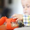 Snackskål fra Ubbi med smart gummiibeskyttelse som dekker åpningen og holder innholdet på plass. Perfekt for mellommåltid eller snacks. Den tyngre basen balanserer koppen slik att den inkke velter.