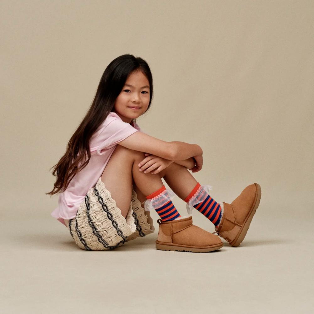 UGG Classic Ultra Mini til barn er en supermyk og allsidig variant av den ikoniske UGG-støvelen – med lavere skaft for enklere av- og påkledning. Skoene leveres forbehandlet for å holde seg fine lenger, og har alt barna elsker med originalen: myk sheepskin-fôring, ultrakomfortabel UGGplush™-innersåle og en lett, fleksibel såle laget for hele dagens lek og aktivitet.