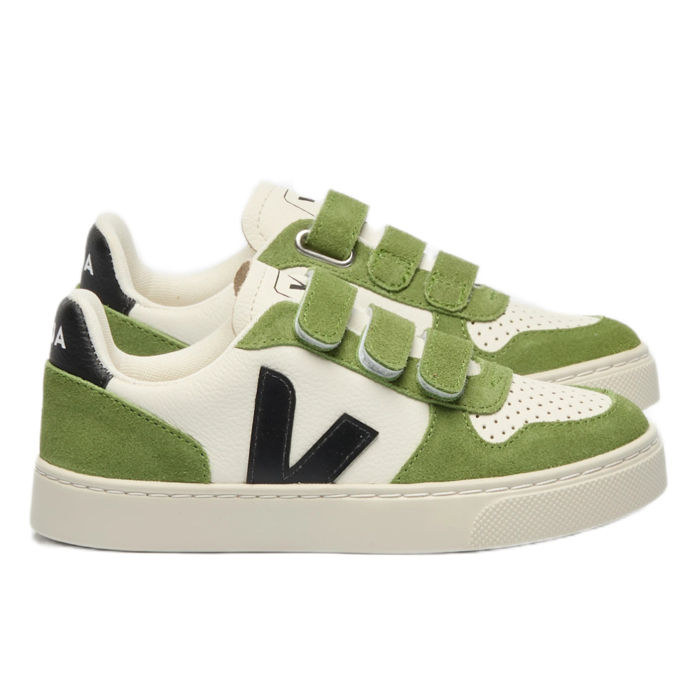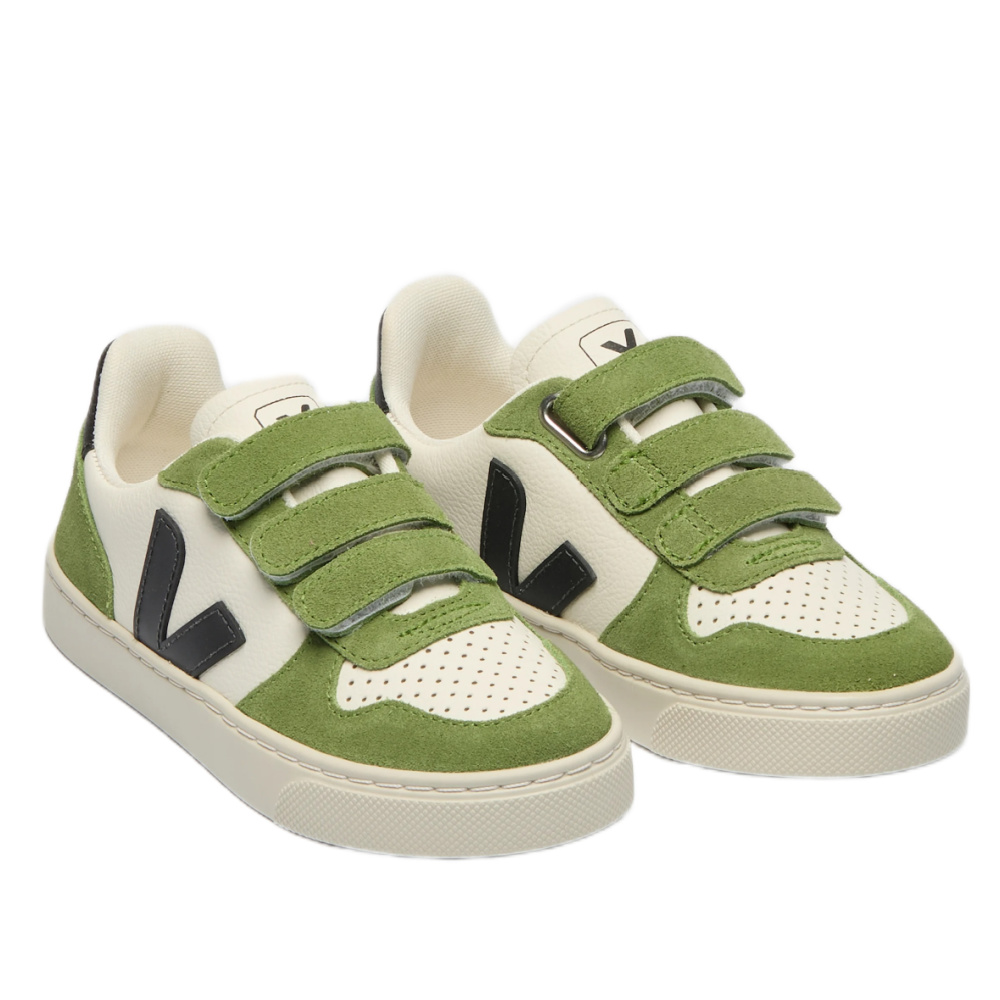VEJA velcro sneakers V-10 leather – pure black/kiwi