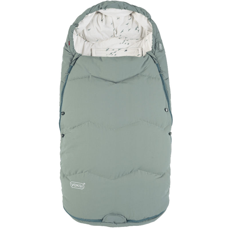 Med sitt luftige fyll av andedunl gir nye Voksi® Explorer optimal og luftig beskyttelse for barnet ditt. Den pustende ullen i underdelen tar fuktighet vekk fra kroppen, mens toveis-glidelåsene og glidelås-åpningen i fotenden gir mulighet for rask lufting. Det vakre stjernemønsteret på mykt, vevd bomull er herlig mot huden, og den øvre delen pakkes tett og godt rundt barnets hode.