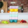 Supersøt liten matboks i silikon, perfekt å ha med på tur. Ta boksen fra hverandre og du har en skål og en tallerken. Snakies kan fryses, puttes i mikroen, kastes veggimellom og vaskes i oppvaskmaskin. Silikonstropp for å holde boksen sammen på tur følger med.