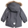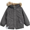 Kul vinterjakke med avtakbar hette med fuskepels, som også enkelt kan tas av. Jakken lukkes med glidelås foran, har lommer med klaff, elastisk snøstopper i ermet og mange reflekser.