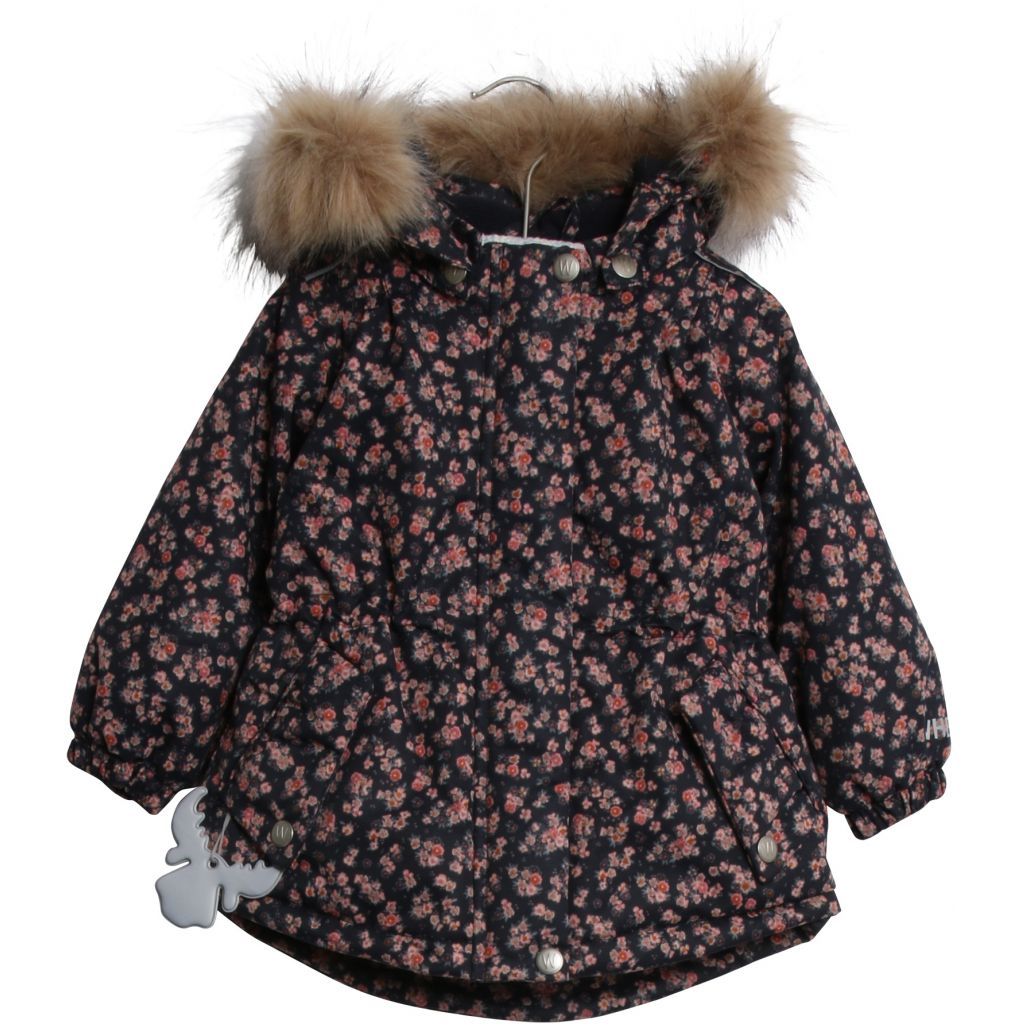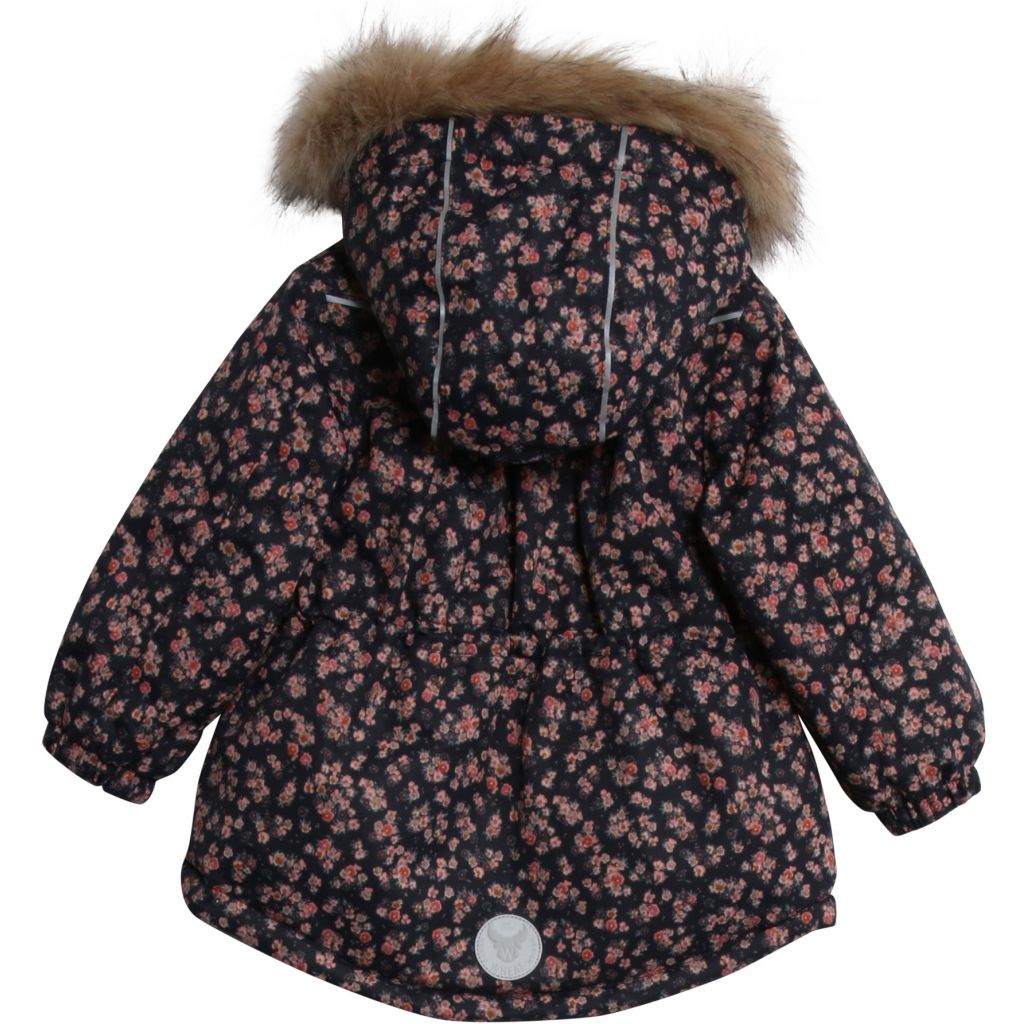 Nydelig vinterjakke med strikk i livet til små jenter. Jakken har avtakbar hette med fuskepels som også enkelt kan tas av. Jakken lukkes med glidelås foran, har lommer i sidene og mange reflekser.