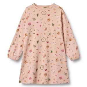 En myk og behagelig nattkjole i 100% økologisk bomull, perfekt for kalde høst- og vinternetter. Nattkjolen har en komfortabel A-form, en liten blondedetalj ved halsen og et nydelig håndtegnet juleprint laget av Wheats eget designteam.
