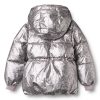 Pufferjakke i metallisk look med snittdetaljer og A-form – en slitesterk og varm jakke for kalde høst- og vinterdager. Jakken kombinerer god funksjonalitet med et moderne uttrykk, og har mange praktiske detaljer som gir barnet komfort og bevegelsesfrihet.