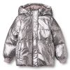 Pufferjakke i metallisk look med snittdetaljer og A-form – en slitesterk og varm jakke for kalde høst- og vinterdager. Jakken kombinerer god funksjonalitet med et moderne uttrykk, og har mange praktiske detaljer som gir barnet komfort og bevegelsesfrihet.