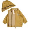 Wheats praktiske regntøysett med matchende jakke og selebukser er en viktig del av barnets garderobe. Settet er laget i et supermykt og lett materiale som gjør det behagelig for barnet ditt å ha på seg og bevege seg i. Det er vanntett og smussavvisende og er derfor lett å rengjøre med en våt klut etter en gjørmete ettermiddag på lekeplassen.