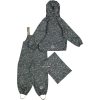 Regnsett med jakke og bukser. Regnjakken har hette og elastikk i ermene. Buksene har justerbar seler og elastiske bånd under føttene. God passform som gir plass til godt med tøy under. Regnsettet leveres i en matchende gymbag.