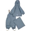 Regnsett med jakke og bukser. Regnjakken har hette og elastikk i ermene. Buksene har justerbar seler og elastiske bånd under føttene. God passform som gir plass til godt med tøy under. Regnsettet leveres i en matchende gymbag.