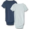 2 bodyer med korte ermer i ribbestrikket stoff laget av en myk økologisk bomullsblanding. Knapping på venstre skulder.