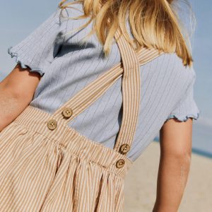 Denne allsidige T-skjorten er et essensielt plagg i barnets garderobe. Bruk den alene med bukser eller skjørt for et enkelt og søtt antrekk, eller som et ekstra lag under kjoler og selebukser på kjøligere dager. En perfekt kombinasjon av komfort og stil!