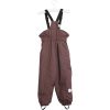 Tekniske vinterbukser med justerbare skulderstropper, elastikk i midjen, glidelås i front, strikk på bena og elastiske stropper under føttene.