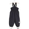 Tekniske vinterbukser med justerbare skulderstropper, elastikk i midjen, glidelås i front, strikk på bena og elastiske stropper under føttene.