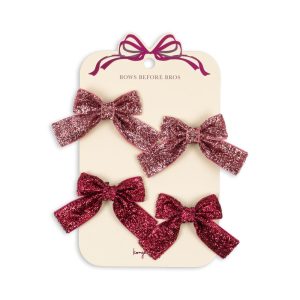 4 pack glitter bow hair clips – pink mix