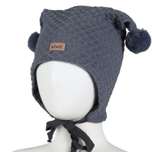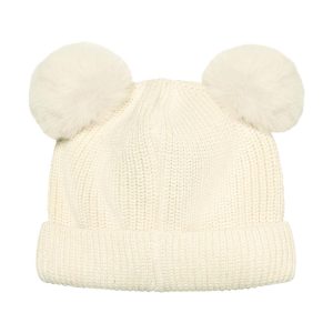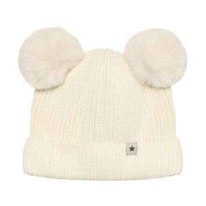 Hat knit w. pompoms – antique white