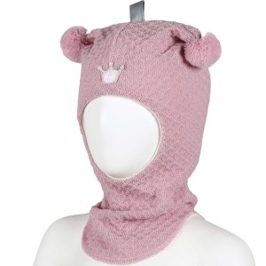 Balaklava ull med krone, waffle knit – pudderrosa