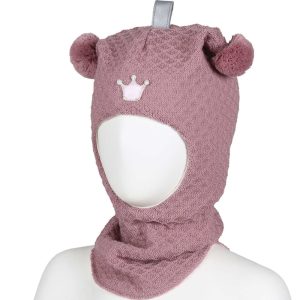 Balaklava ull med krone, waffle knit – gammelrosa
