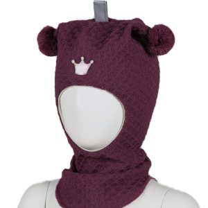 Balaklava ull med krone, waffle knit – plomme