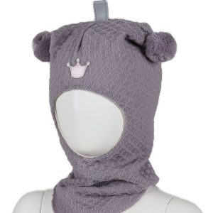 Balaklava ull med krone, waffle knit – støvlilla
