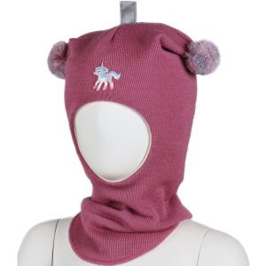 Unicorn balaklava ull – mørk rosa multicolor bobbles
