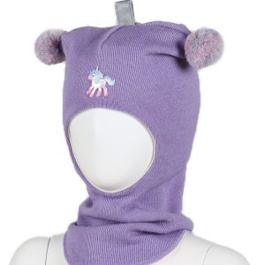 Unicorn balaklava ull – lavendel multicolor bobbles