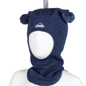 Police car balaklava ull – jeansblå multicolor bobbles
