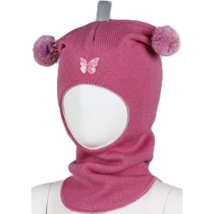 Butterfly balaklava ull – pudderrosa multicolor bobbles