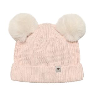 Hat knit w. pompoms – peach blush
