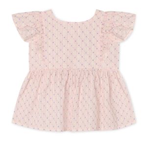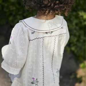 Dobby ss Rose Embr blouse – sandshell